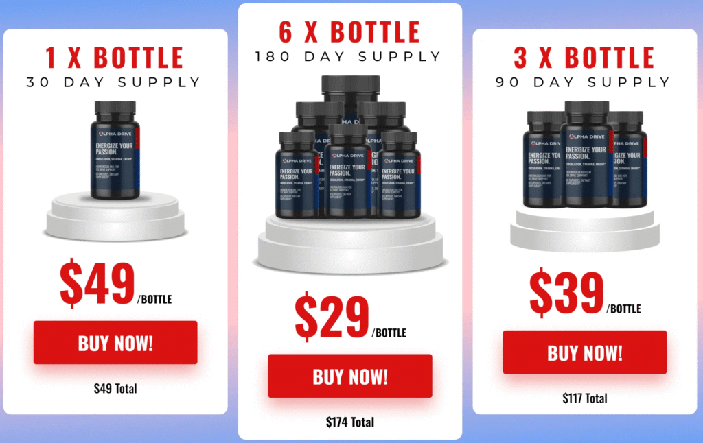 Alpha Drive is a natural male enhancement supplement aimed at improving energy, stamina, libido, and sexual performance. This formula is designed for men who may feel a decline in vitality due to aging or lifestyle factors.